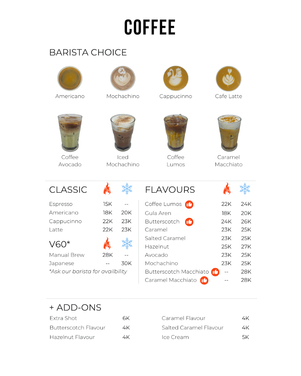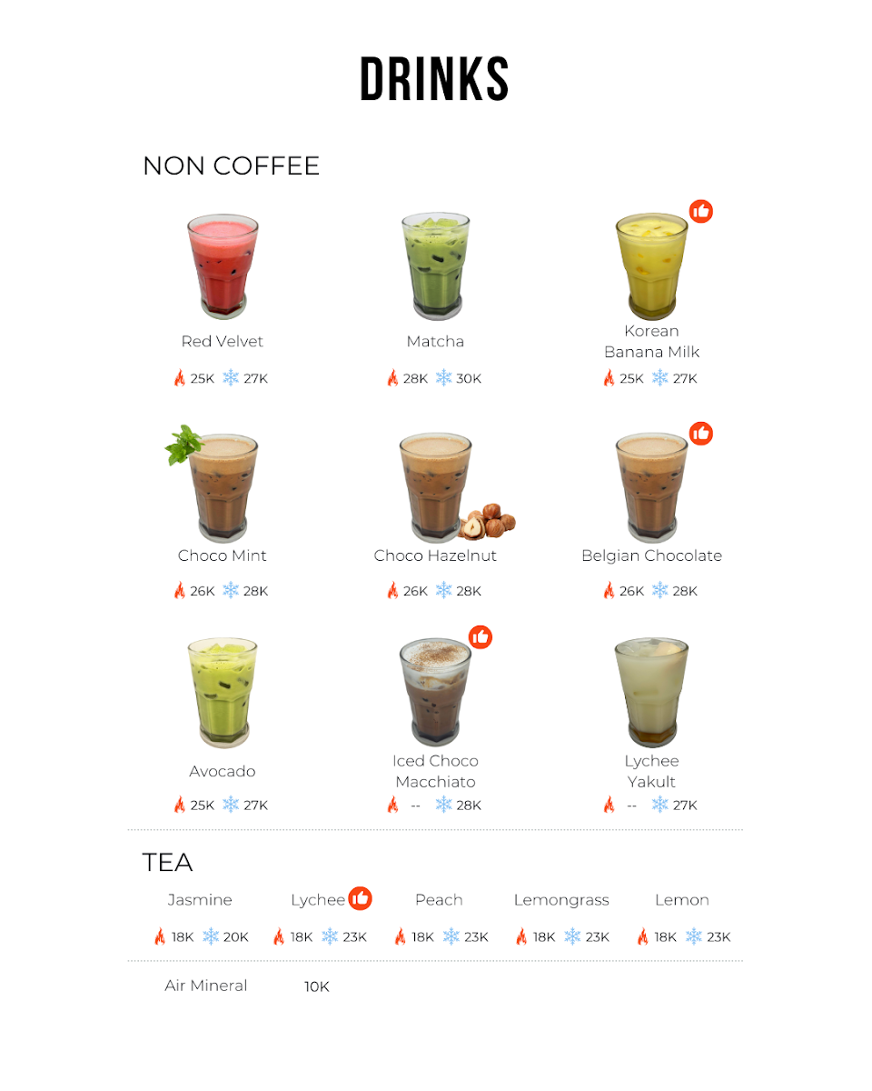 - Coffee and Beverages: Includes manual brew coffee, espresso-based drinks, and creative coffee options incorporating alternative milk choices.